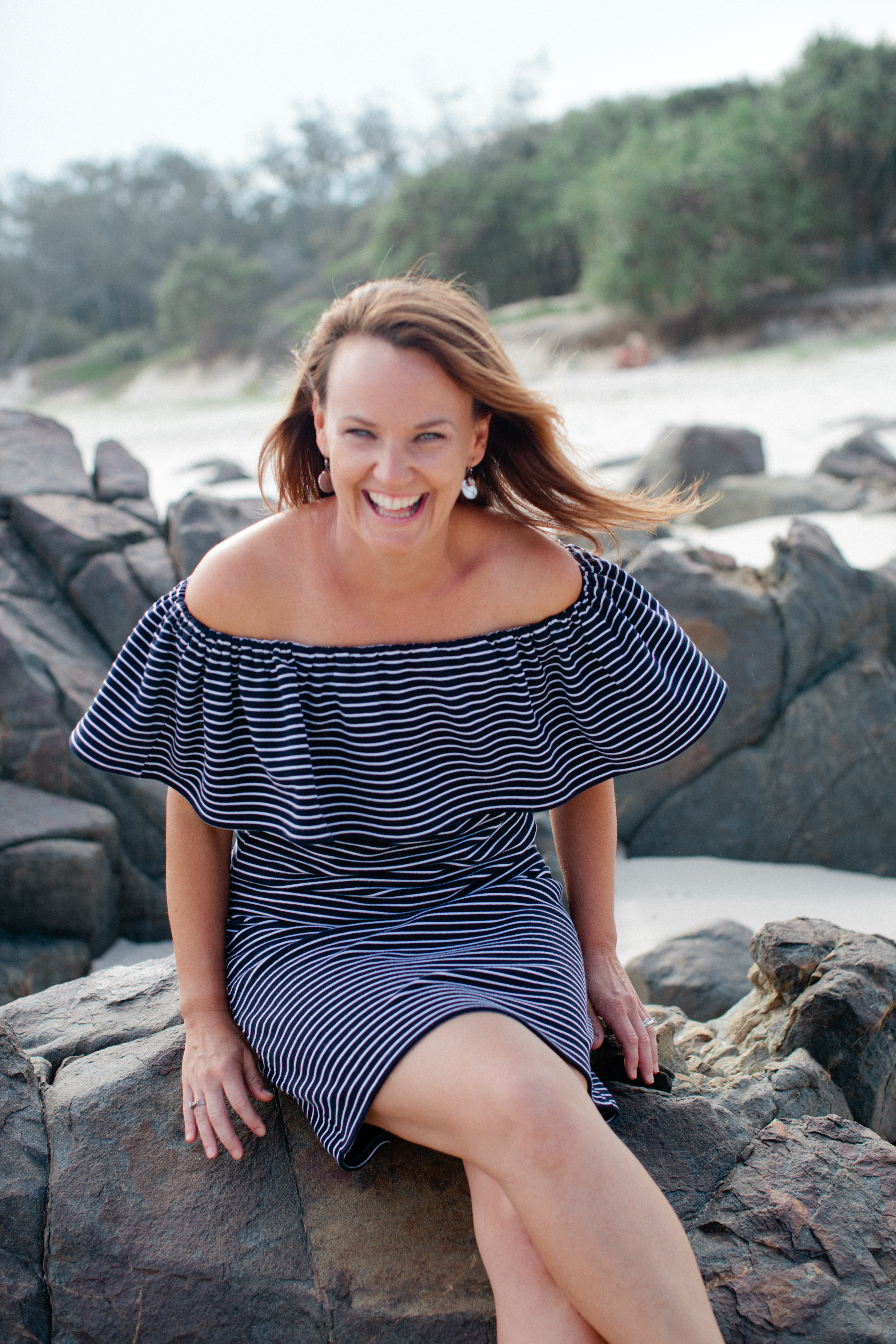 Seed Stripe Off Shoulder Dress